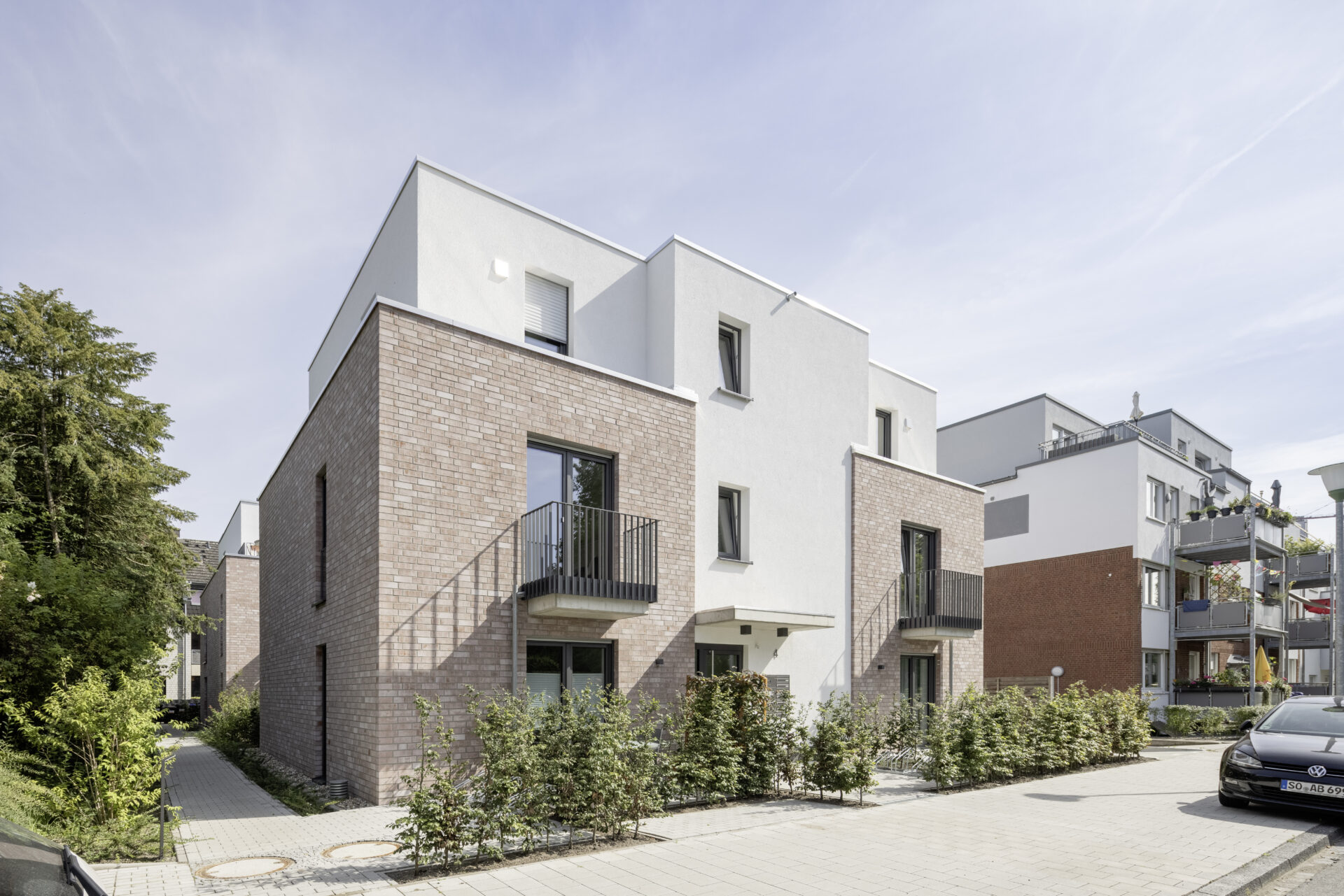 Die Erdgeschosse erhielten jeweils eine Terrasse. Die anderen Wohnungen verfügen in der Regel über einen Balkon.