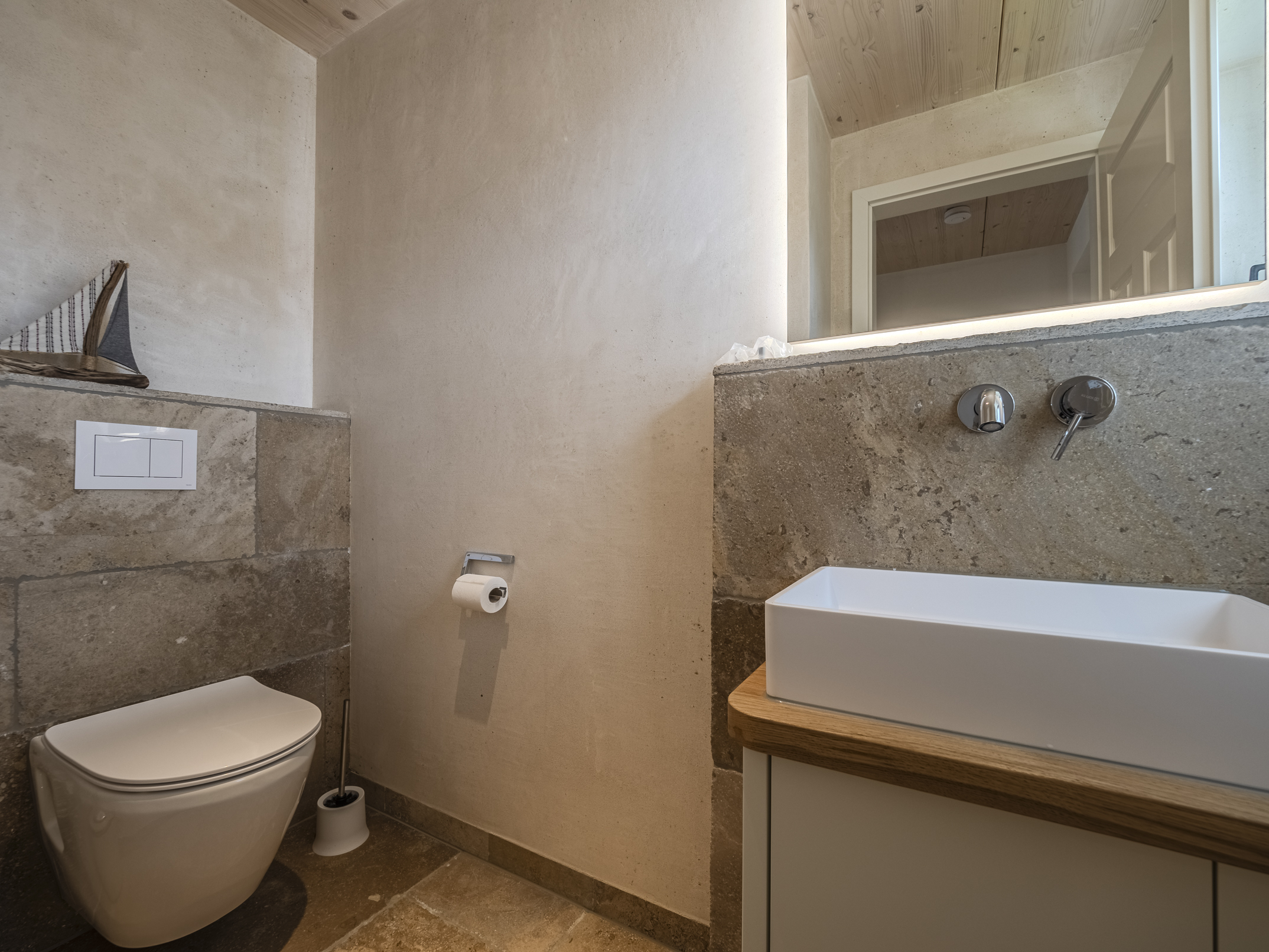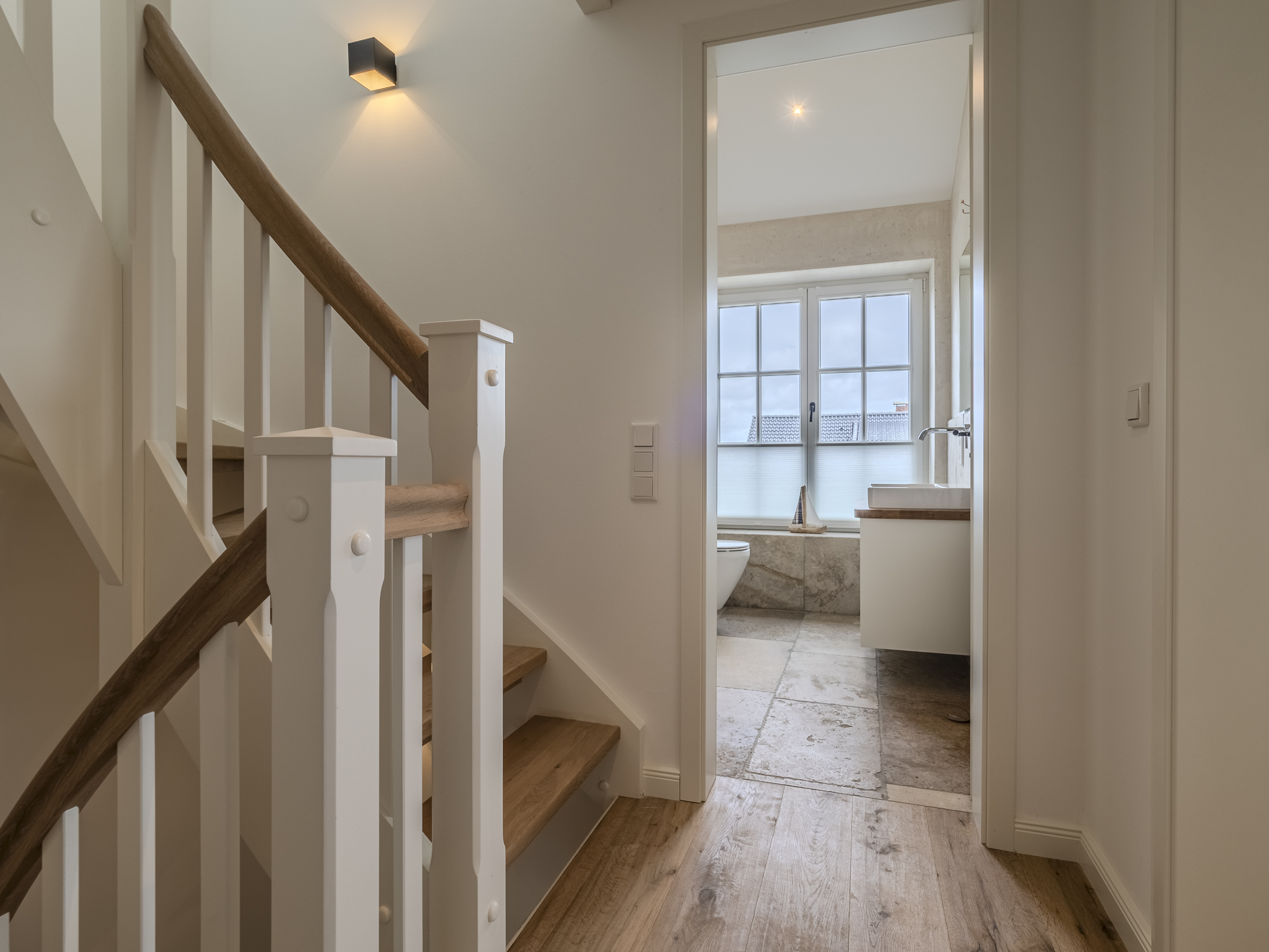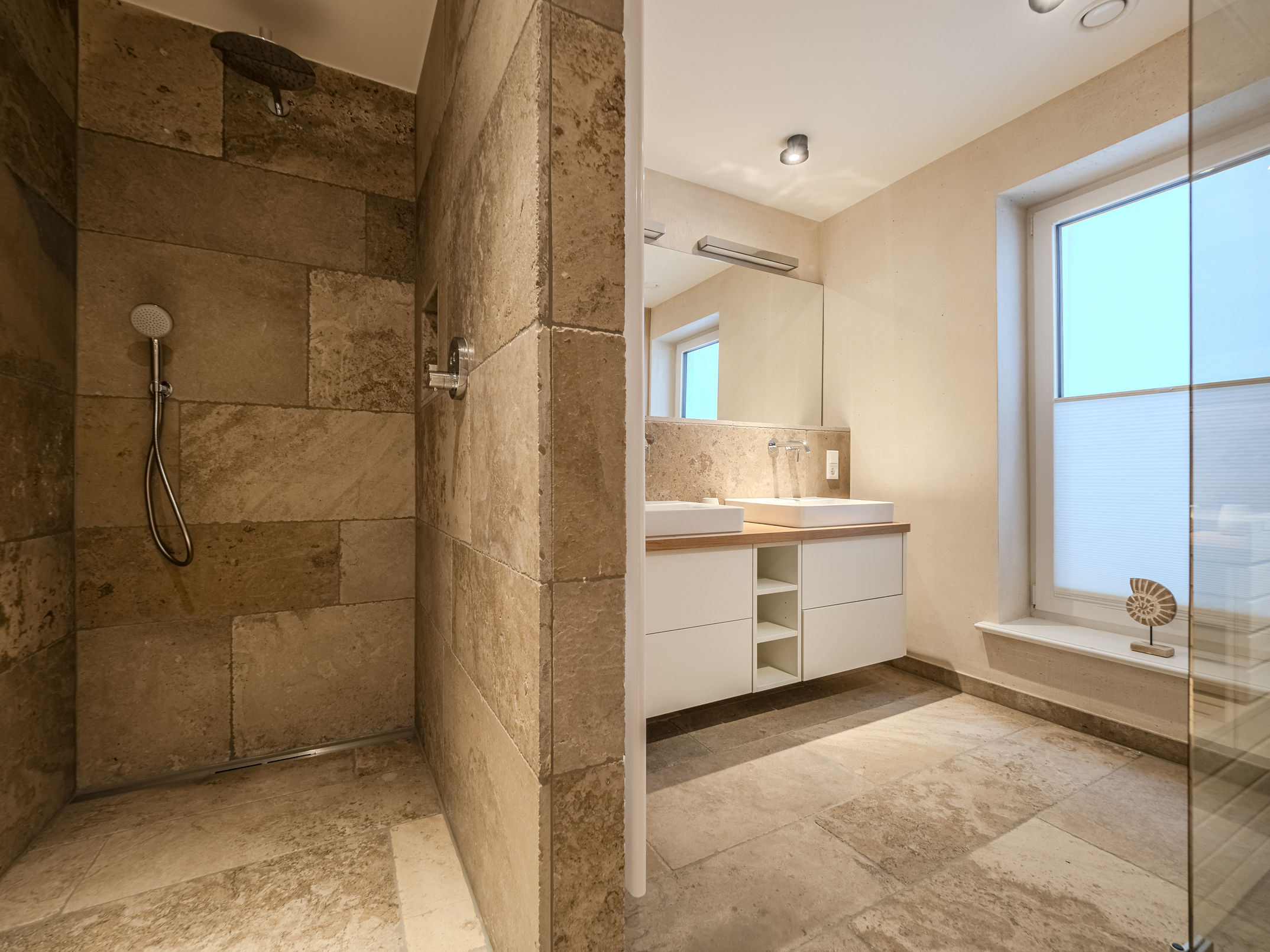 Insgesamt verfügt das Haus über drei modern gestaltete Badezimmer, die mit hochwertigen Materialien und stilvollen Armaturen ausgestattet sind. Hier entsteht eine private Wohlfühlatmosphäre, in der Sie nach einem Tag auf Sylt wunderbar entspannen können. Ergänzt wird das Raumangebot durch ein separates Gäste-WC im Eingangsbereich.